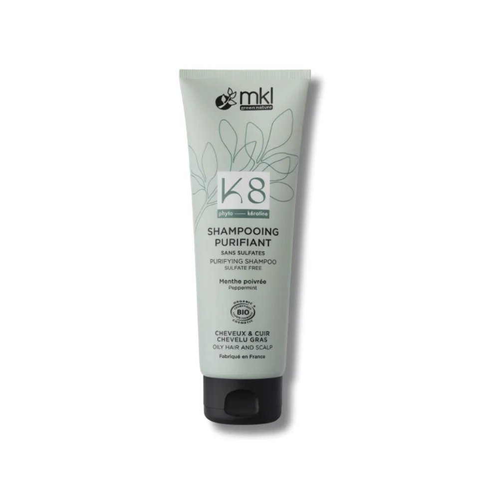 Le Shampooing Purifiant K8 de MKL Green Nature est un soin capillaire certifié Bio spécifiquement élaboré pour assainir le cuir chevelu et réguler l'excès de sébum. Sa formule douce mais efficace permet de nettoyer les cheveux en profondeur sans provoquer de réaction de défense (hyperséborrhée réactionnelle). En libérant les pores des impuretés et des résidus de pollution, il redonne de la légèreté et du volume aux cheveux dès la racine, tout en espaçant progressivement la fréquence des lavages.