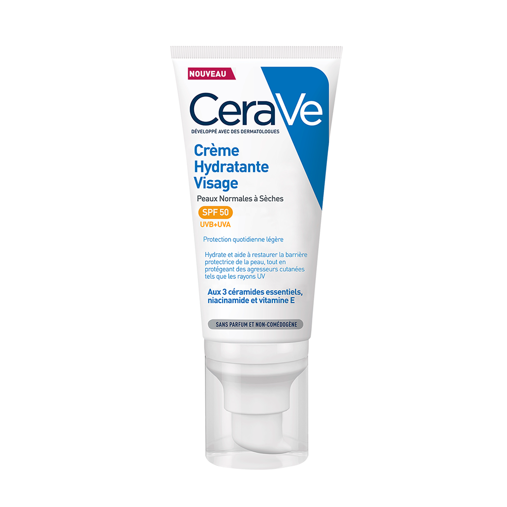 Cette Crème Hydratante Visage est un soin de jour essentiel qui offre une très haute protection solaire tout en hydratant intensément la peau. Spécialement formulée pour le visage, elle assure une protection à large spectre contre les rayons UVA et UVB grâce à son indice SPF50. Elle est idéale pour un usage quotidien, y compris pour les peaux sensibles ou celles qui utilisent des ingrédients actifs (comme le rétinol ou les AHA) nécessitant une protection maximale. Sa formule non grasse est enrichie en trois céramides essentiels et utilise la technologie MVE (MultiVesicular Emulsion) pour diffuser progressivement l'hydratation tout au long de la journée, aidant à restaurer et à maintenir la barrière protectrice de la peau.